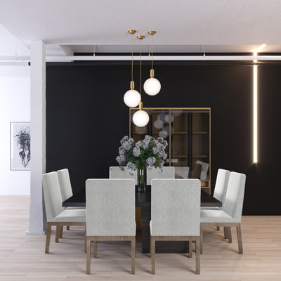 A classic dining chair with a stylish detail - the entire silhouette is upholstered. The seat is accented with piping edges for an added touch.