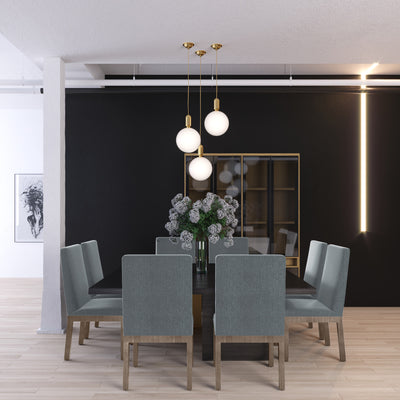 A classic dining chair with a stylish detail - the entire silhouette is upholstered. The seat is accented with piping edges for an added touch.