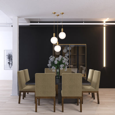 A classic dining chair with a stylish detail - the entire silhouette is upholstered. The seat is accented with piping edges for an added touch.