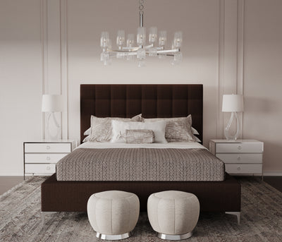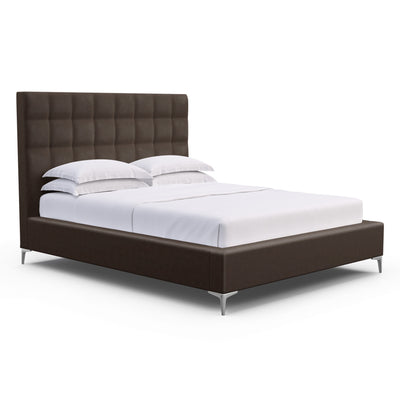 Understated with an elegant twist, this box-tufted bed is defined by crisp lines and the luxury of a hand tufted headboard. Fully upholstered and complemented by square block feet, this customizable platform bed is perfect for those seeking a low-profile addition to their bedroom.
