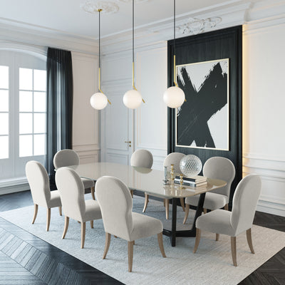 A playful dining chair that has an elegant appeal. The Caitlyn has flared legs and feminine curves for total sophisticated ornamentation.