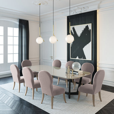 A playful dining chair that has an elegant appeal. The Caitlyn has flared legs and feminine curves for total sophisticated ornamentation.