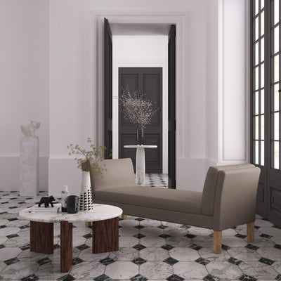 The timeless silhouette of the Charlton Bench delivers the best of classic and contemporary design elements. Featuring elongated, tapered wooden legs, this versatile bench is a striking accent piece. Flanked by low, curved backrests, its single bench seat provides a wide resting area.