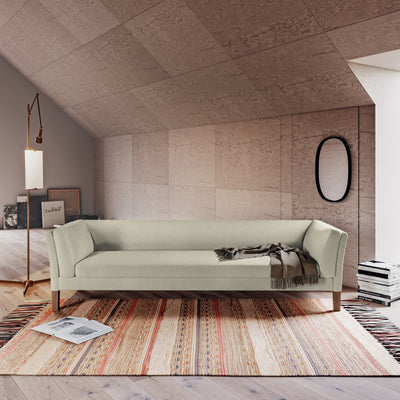 The elegantly slender form of the Charlton Sofa illustrates its traditional design influence. Gently outward-leaning sheltering arms encase its elegant single bench seat. With its elevated, wooden legs, this sweet sofa design is a clear winner.