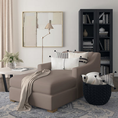 Lounge in style with the Crosby Chaise. The chaise's distinctive slope arms lead toward a solid bench seat with ample room for naps and leisurely Sunday reads. Understated elegance at its best.