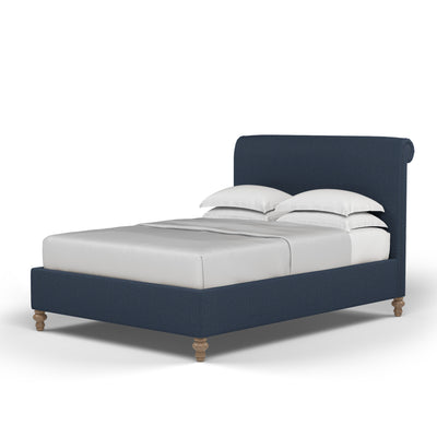 Empire Scroll Bed - Bluebell Box Weave Linen
