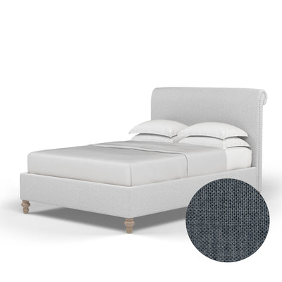 Empire Scroll Bed - Bluebell Pebble Weave Linen