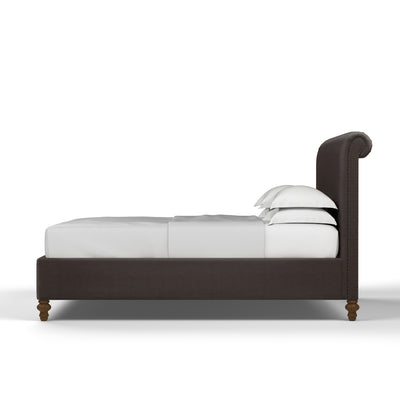 Inspired by classic design, this sleigh bed boasts an exquisite form that suits any style of bedroom. Scrolled foot and headboards and wooden bun feet offer an updated 19th century Empire appeal. This bed is perfect for the minimalist who wants a blend of contemporary and vintage style.