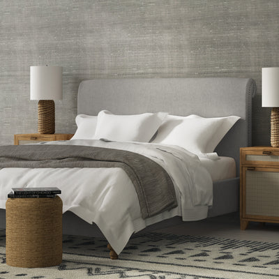 Empire Scroll Bed - Silver Streak Box Weave Linen