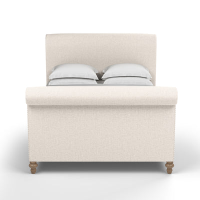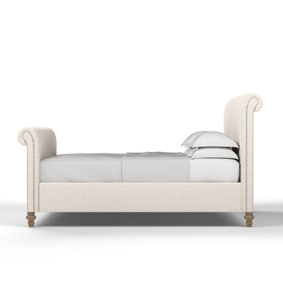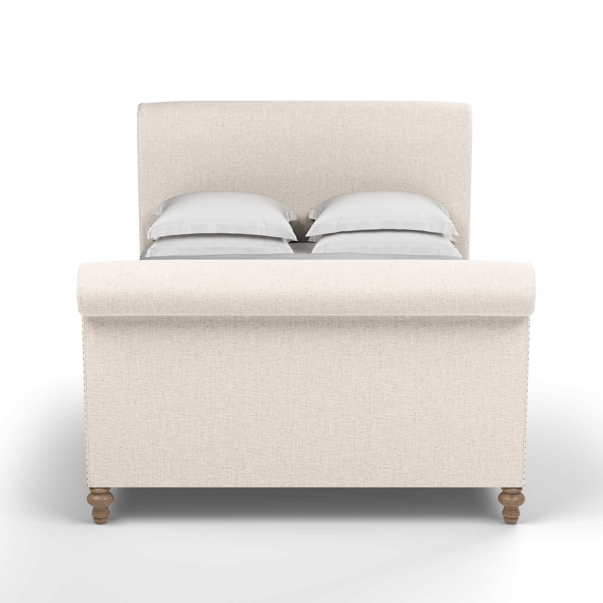 Inspired by classic design, this sleigh bed boasts an exquisite form that suits any style of bedroom. Scrolled foot and headboards and wooden bun feet offer an updated 19th century Empire appeal. This bed is perfect for the minimalist who wants a blend of contemporary and vintage style.