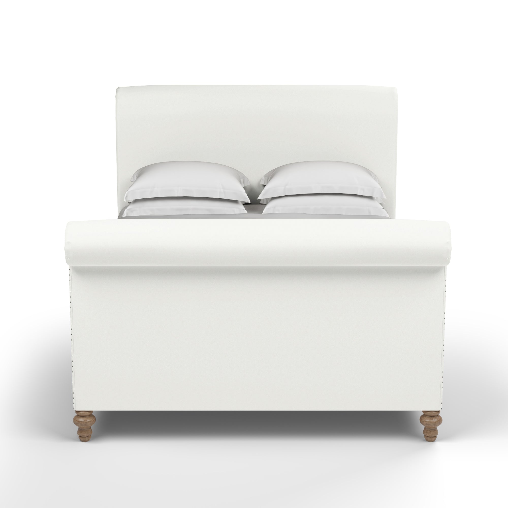 Inspired by classic design, this sleigh bed boasts an exquisite form that suits any style of bedroom. Scrolled foot and headboards and wooden bun feet offer an updated 19th century Empire appeal. This bed is perfect for the minimalist who wants a blend of contemporary and vintage style.