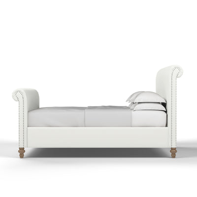 Empire Scroll Bed w/ Footboard - Blanc Plush Velvet
