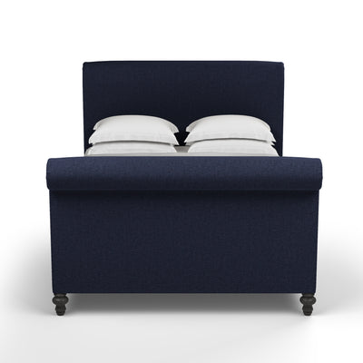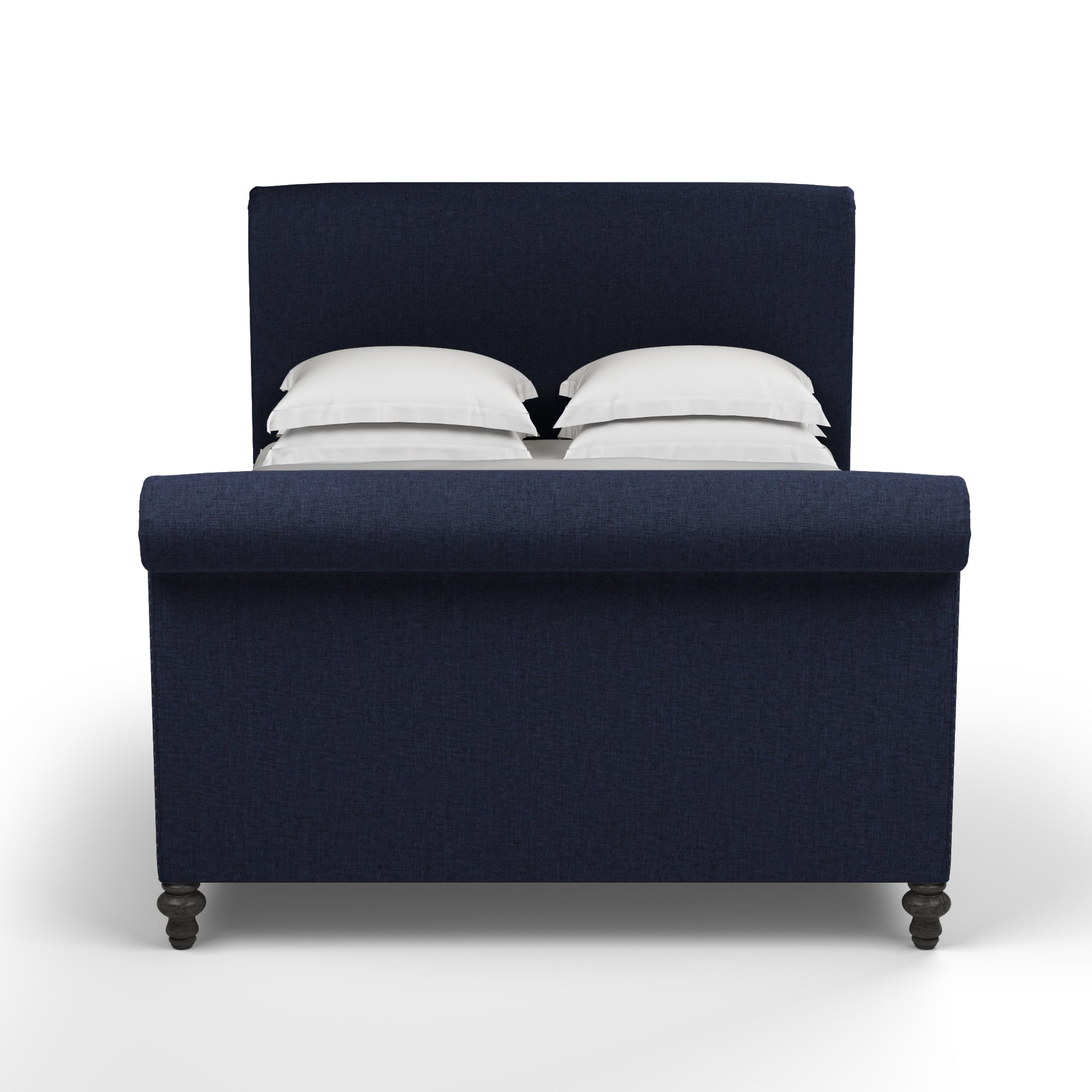 Inspired by classic design, this sleigh bed boasts an exquisite form that suits any style of bedroom. Scrolled foot and headboards and wooden bun feet offer an updated 19th century Empire appeal. This bed is perfect for the minimalist who wants a blend of contemporary and vintage style.