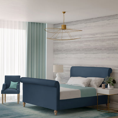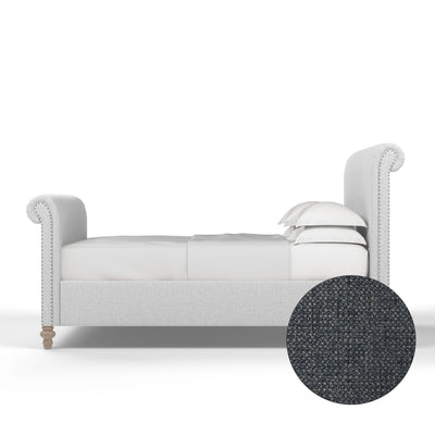 Inspired by classic design, this sleigh bed boasts an exquisite form that suits any style of bedroom. Scrolled foot and headboards and wooden bun feet offer an updated 19th century Empire appeal. This bed is perfect for the minimalist who wants a blend of contemporary and vintage style.