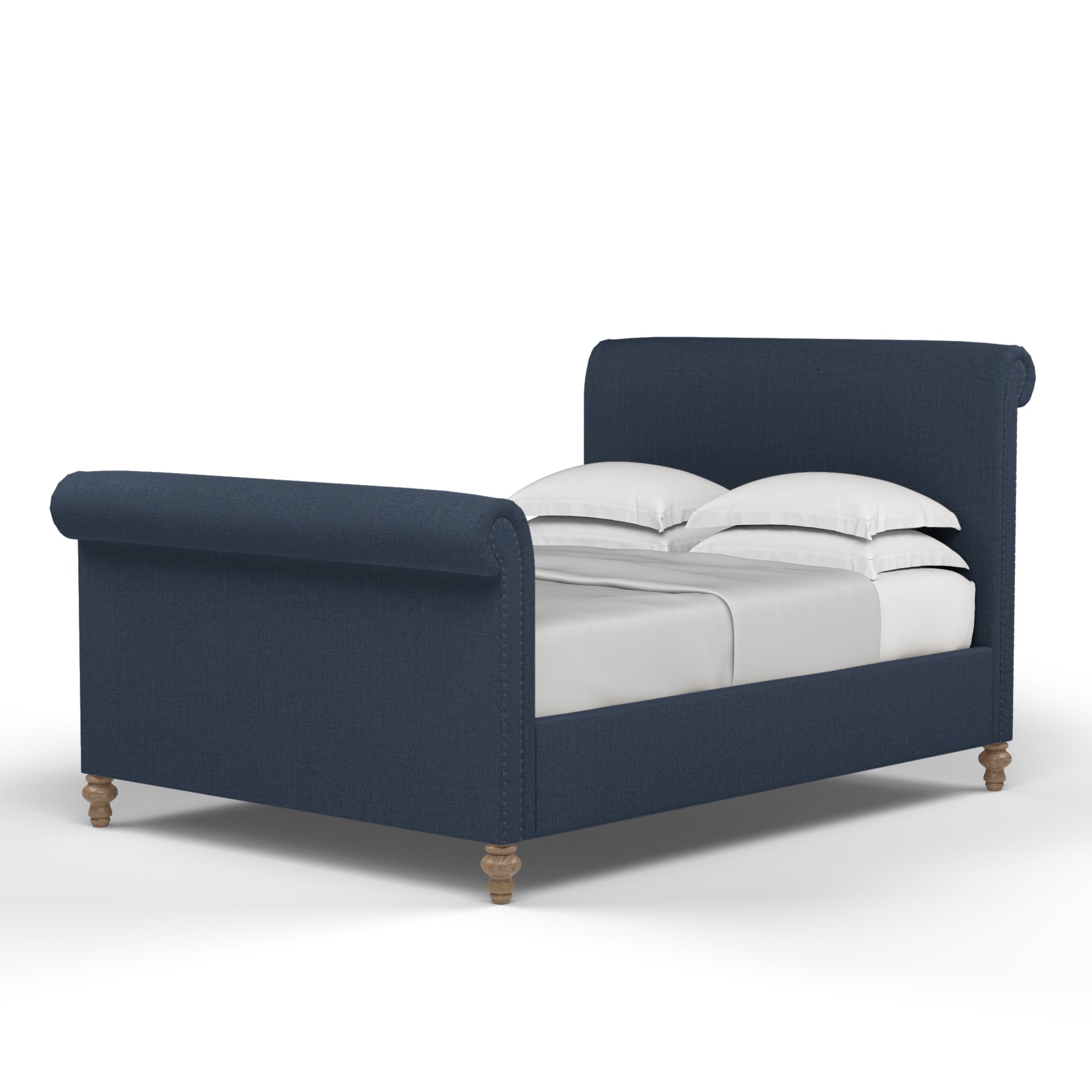 Empire Scroll Bed w/ Footboard - Bluebell Box Weave Linen