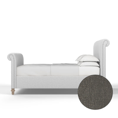 Inspired by classic design, this sleigh bed boasts an exquisite form that suits any style of bedroom. Scrolled foot and headboards and wooden bun feet offer an updated 19th century Empire appeal. This bed is perfect for the minimalist who wants a blend of contemporary and vintage style.