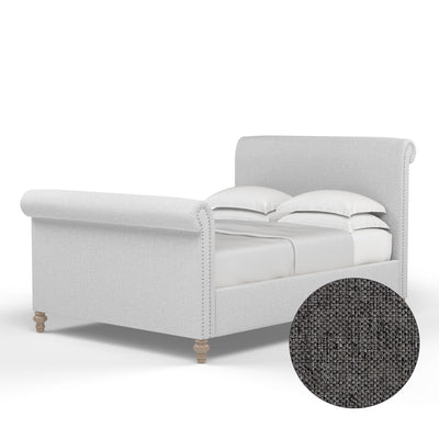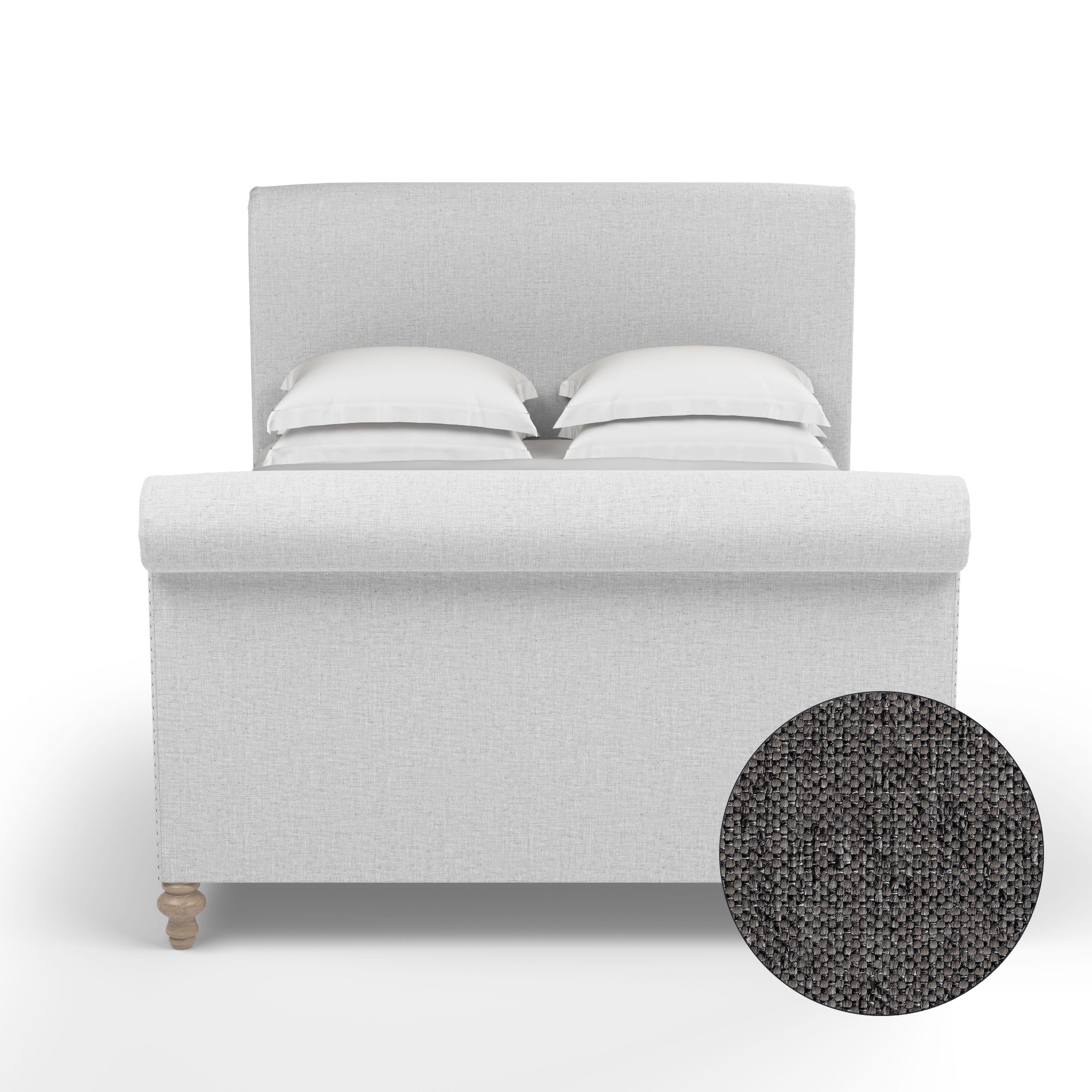 Empire Scroll Bed w/ Footboard - Graphite Pebble Weave Linen