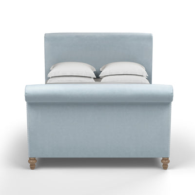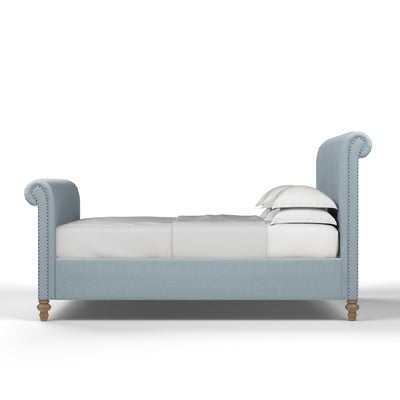 Inspired by classic design, this sleigh bed boasts an exquisite form that suits any style of bedroom. Scrolled foot and headboards and wooden bun feet offer an updated 19th century Empire appeal. This bed is perfect for the minimalist who wants a blend of contemporary and vintage style.