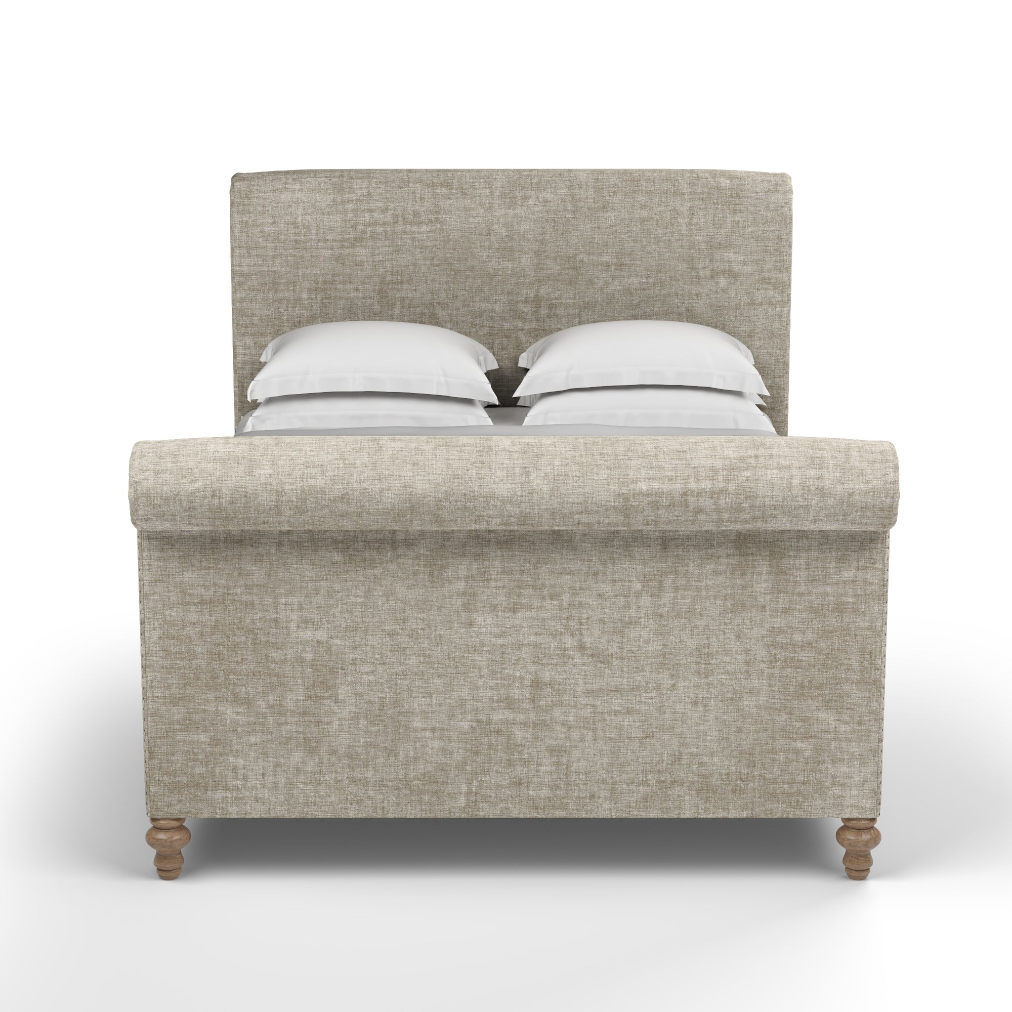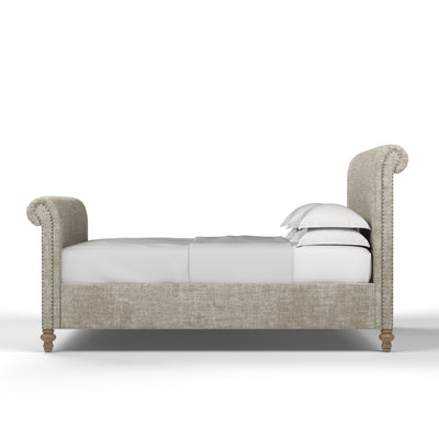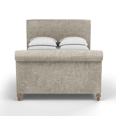 Inspired by classic design, this sleigh bed boasts an exquisite form that suits any style of bedroom. Scrolled foot and headboards and wooden bun feet offer an updated 19th century Empire appeal. This bed is perfect for the minimalist who wants a blend of contemporary and vintage style.