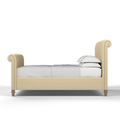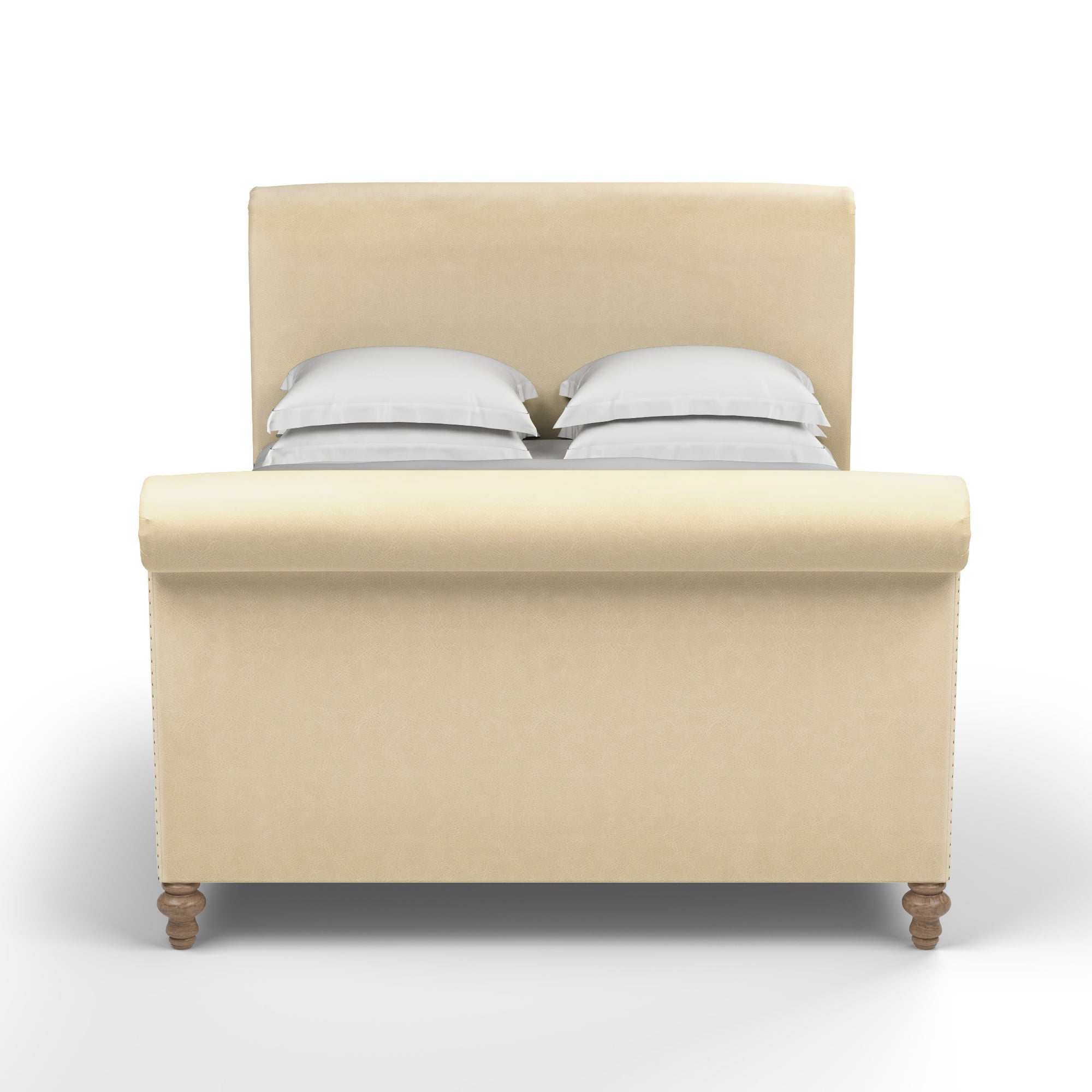 Inspired by classic design, this sleigh bed boasts an exquisite form that suits any style of bedroom. Scrolled foot and headboards and wooden bun feet offer an updated 19th century Empire appeal. This bed is perfect for the minimalist who wants a blend of contemporary and vintage style.