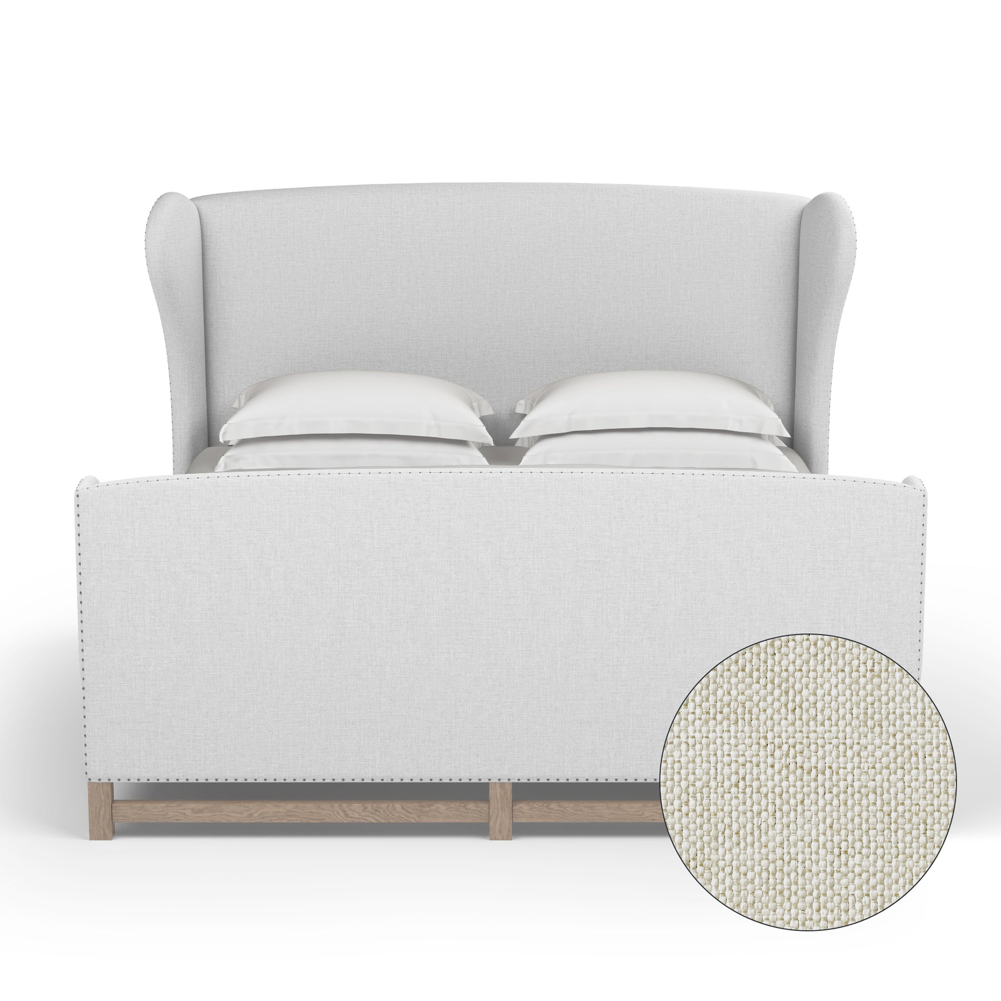 Herbert Wingback Bed w/ Footboard - Alabaster Pebble Weave Linen