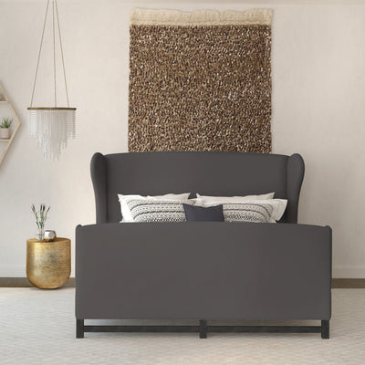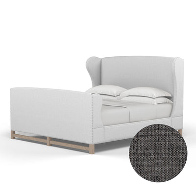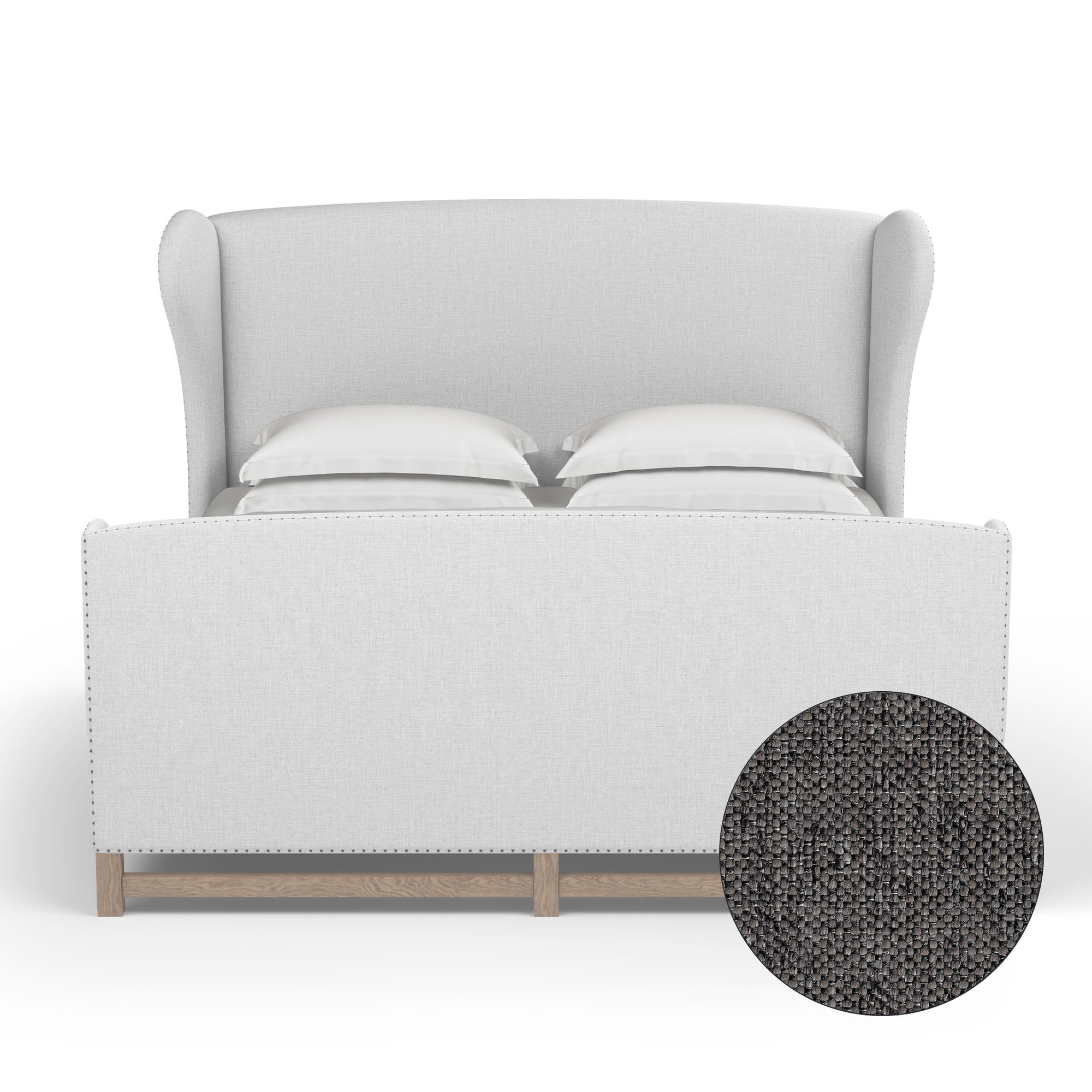 Herbert Wingback Bed w/ Footboard - Graphite Pebble Weave Linen