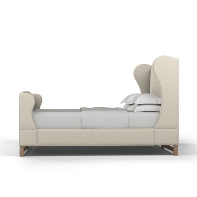 Herbert Wingback Bed w/ Footboard - Oyster Box Weave Linen