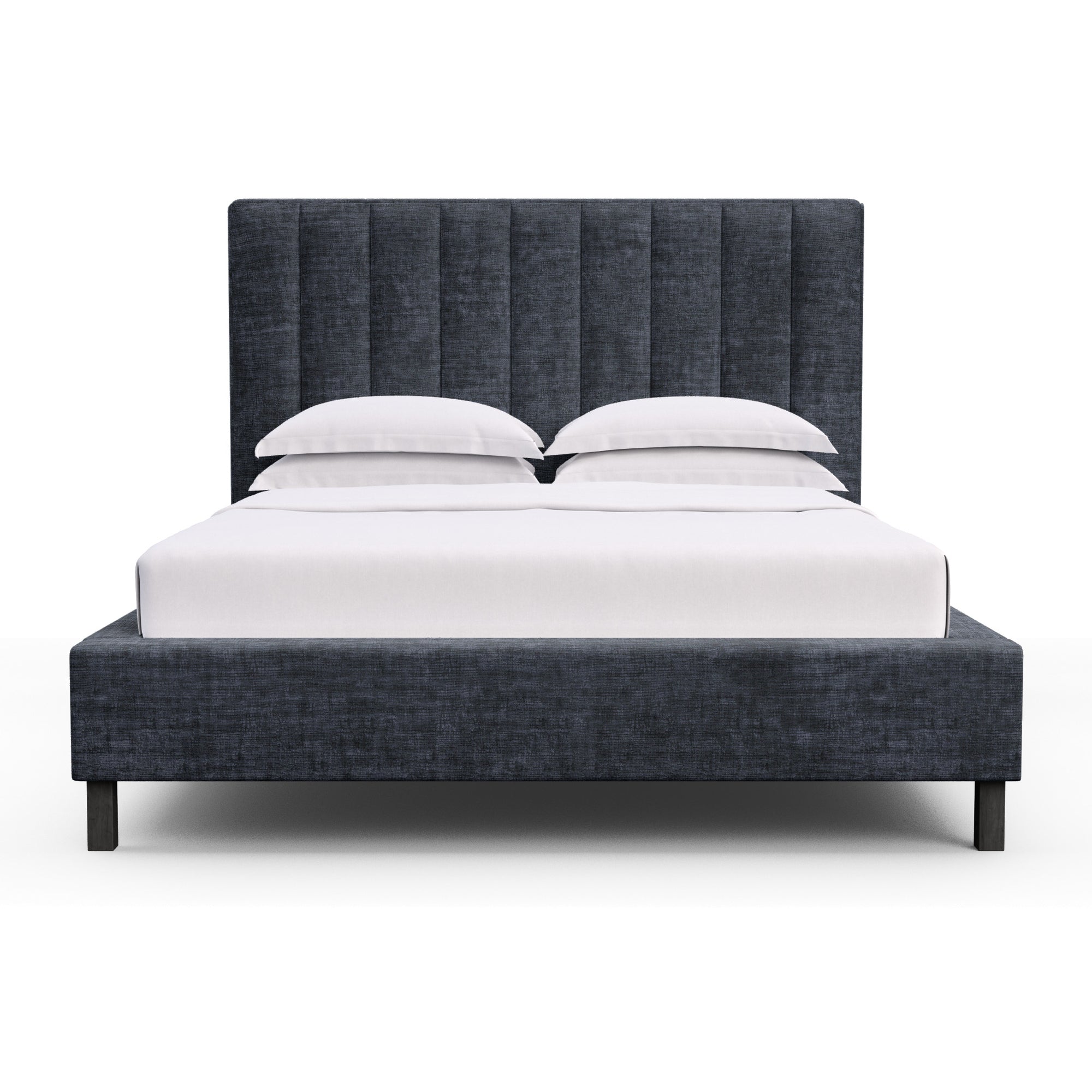 Distinguished by a vertical, tufted panel detail and crisp lines, this bed is the epitome of sophistication. To further elongate each panel, are kiln-dried post wooden legs that add support and style to withstand the years in both wear and style.