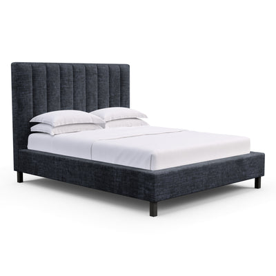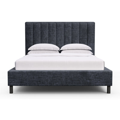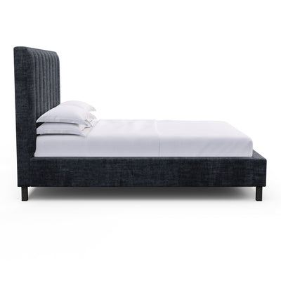 Highline Vertical Channel Panel Bed - Blue Print Crushed Velvet