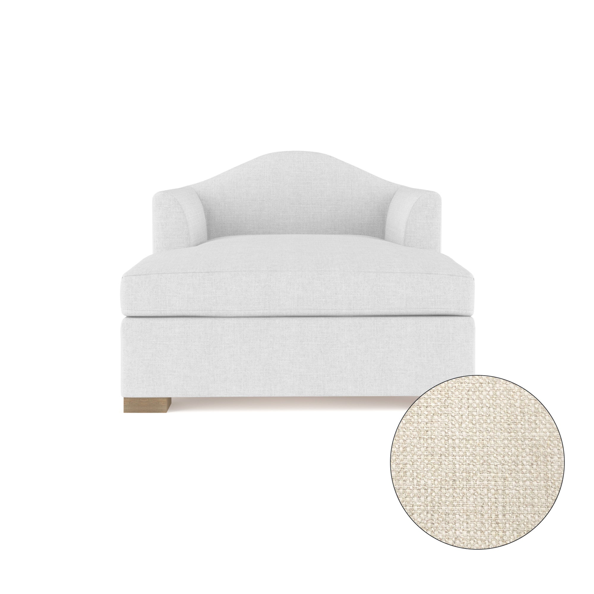 This simplified chaise combines clean-lined contemporary comfort with an echo of the past. Its unmistakable camelback creates a welcoming headrest atop the generously sized lounging platform. Recessed square feet cement the look’s modern leanings.