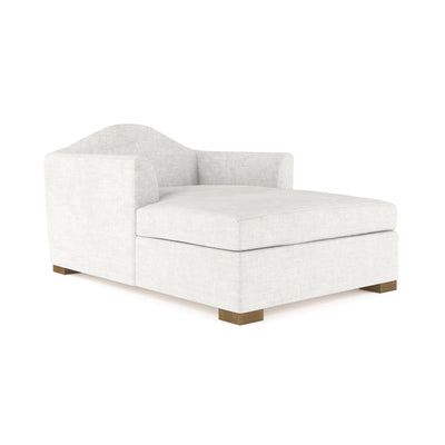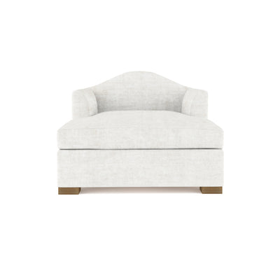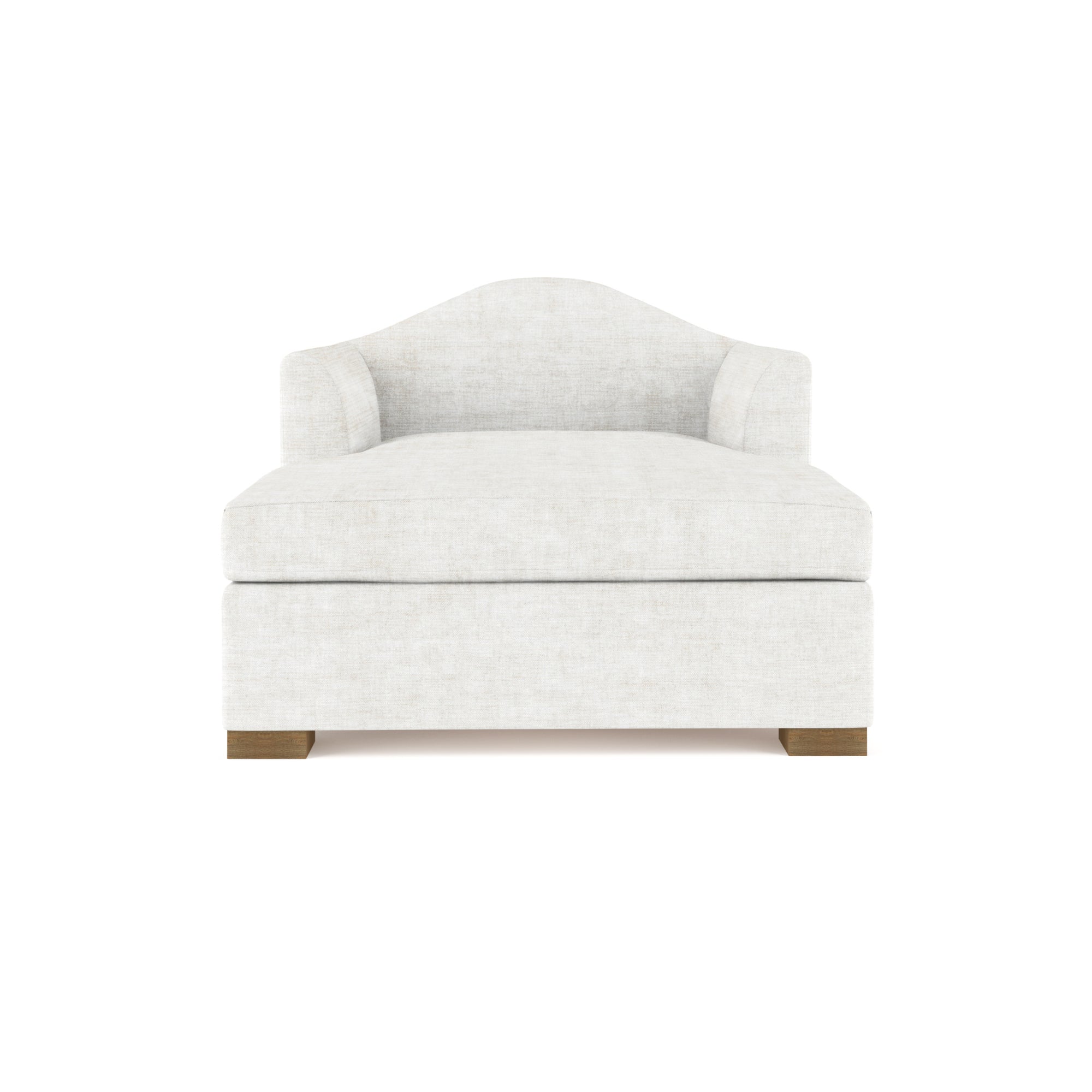 This simplified chaise combines clean-lined contemporary comfort with an echo of the past. Its unmistakable camelback creates a welcoming headrest atop the generously sized lounging platform. Recessed square feet cement the look’s modern leanings.