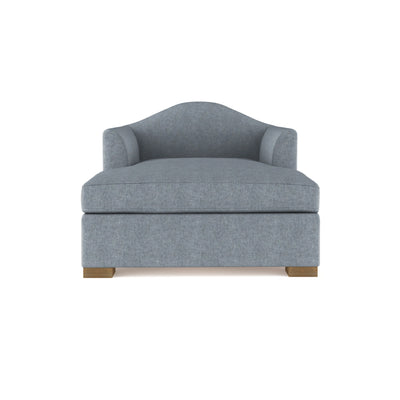 This simplified chaise combines clean-lined contemporary comfort with an echo of the past. Its unmistakable camelback creates a welcoming headrest atop the generously sized lounging platform. Recessed square feet cement the look’s modern leanings.