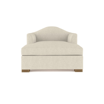 This simplified chaise combines clean-lined contemporary comfort with an echo of the past. Its unmistakable camelback creates a welcoming headrest atop the generously sized lounging platform. Recessed square feet cement the look’s modern leanings.