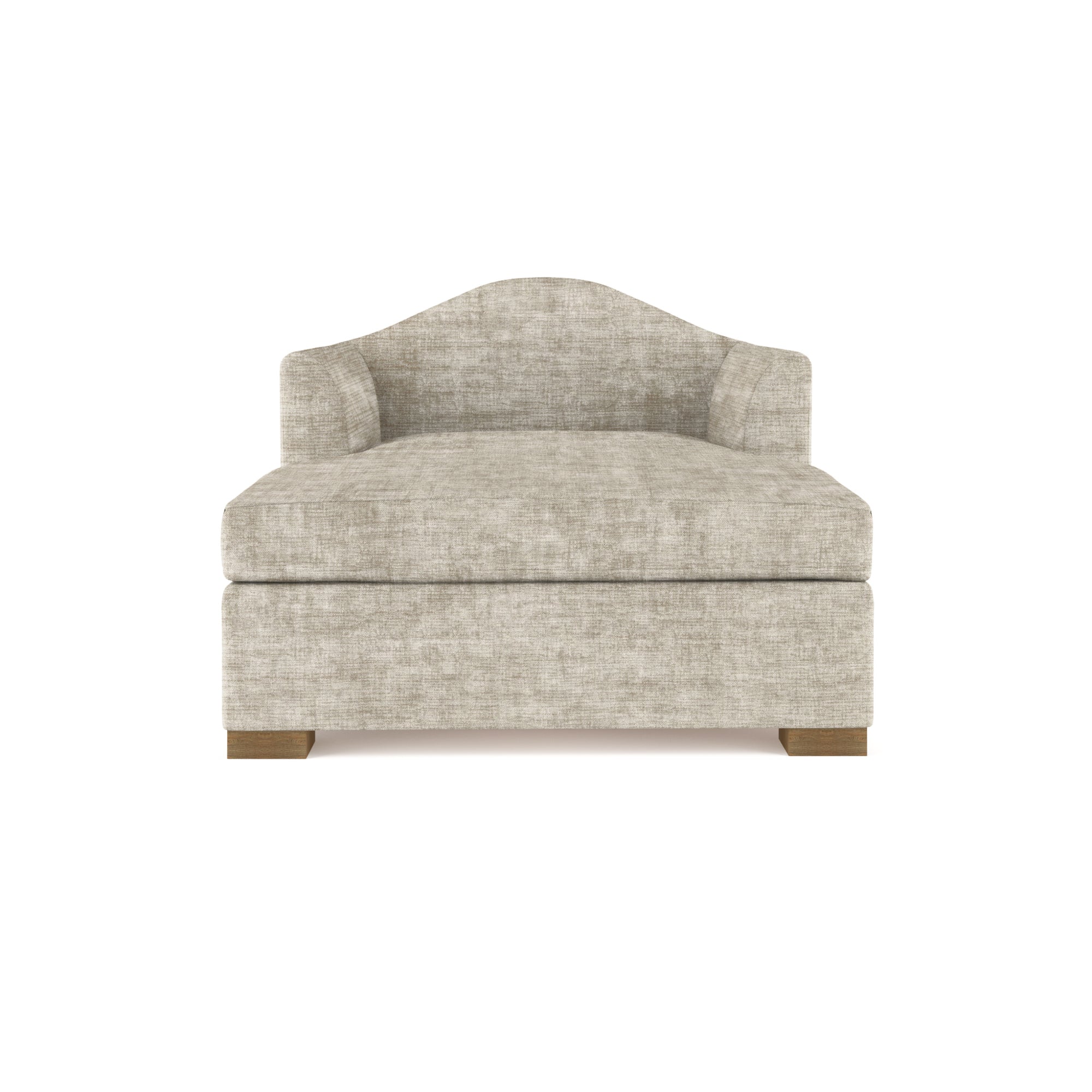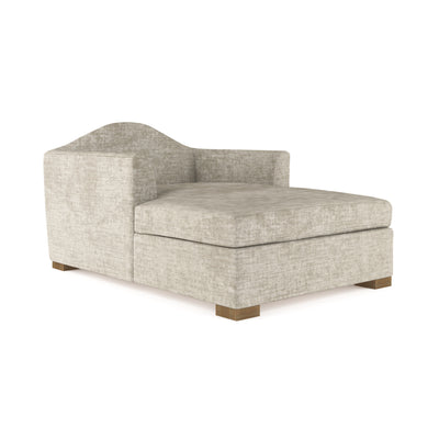 This simplified chaise combines clean-lined contemporary comfort with an echo of the past. Its unmistakable camelback creates a welcoming headrest atop the generously sized lounging platform. Recessed square feet cement the look’s modern leanings.