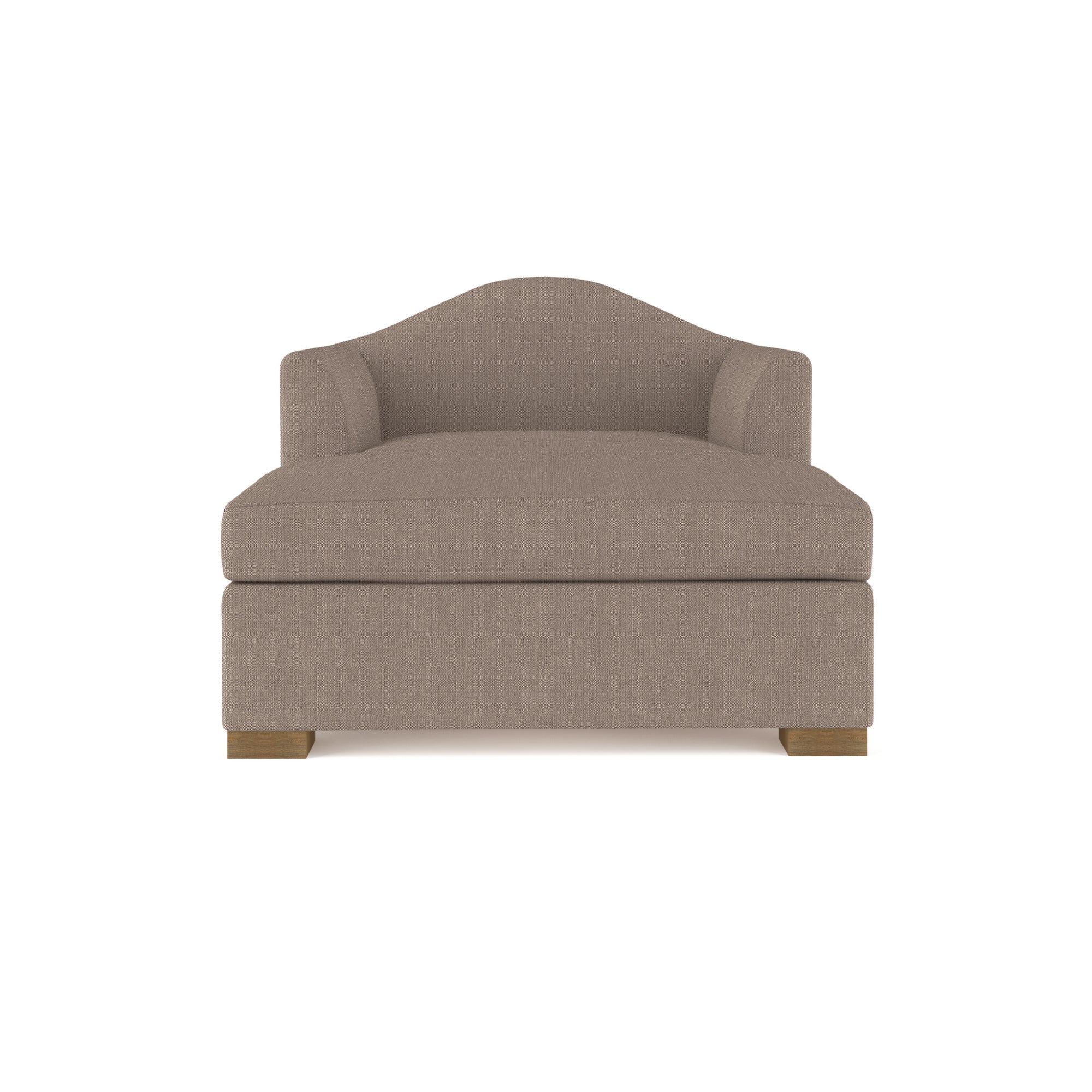 This simplified chaise combines clean-lined contemporary comfort with an echo of the past. Its unmistakable camelback creates a welcoming headrest atop the generously sized lounging platform. Recessed square feet cement the look’s modern leanings.
