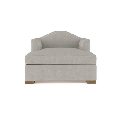 This simplified chaise combines clean-lined contemporary comfort with an echo of the past. Its unmistakable camelback creates a welcoming headrest atop the generously sized lounging platform. Recessed square feet cement the look’s modern leanings.