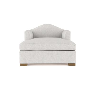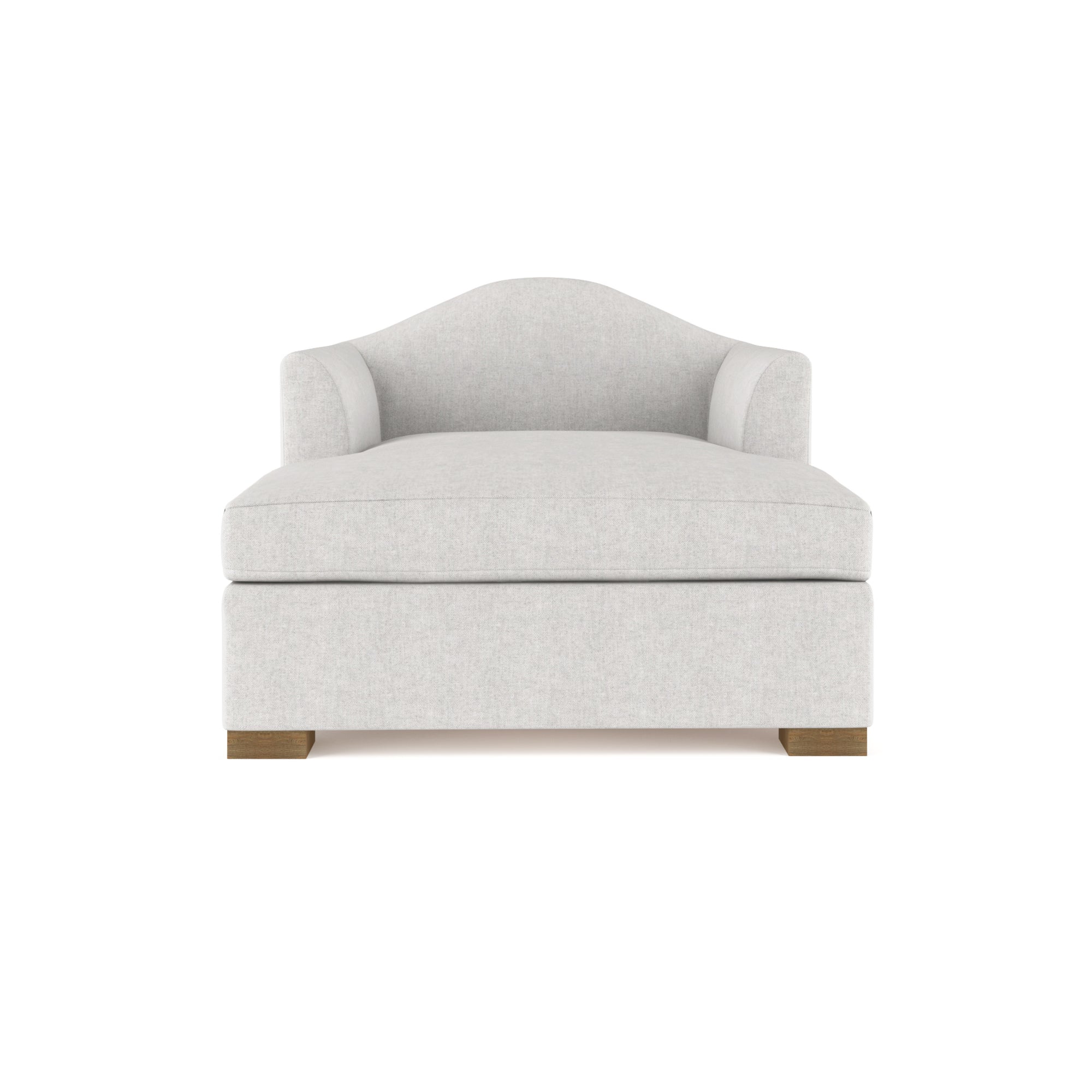 This simplified chaise combines clean-lined contemporary comfort with an echo of the past. Its unmistakable camelback creates a welcoming headrest atop the generously sized lounging platform. Recessed square feet cement the look’s modern leanings.