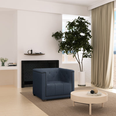 This charmer takes notes from the 1920's with its feet firmly planted in the now. Tufted button and brass detailing softens the edges of the frame’s no-nonsense square form. A clever design to complement all your favorite décor, from retro to recent.
