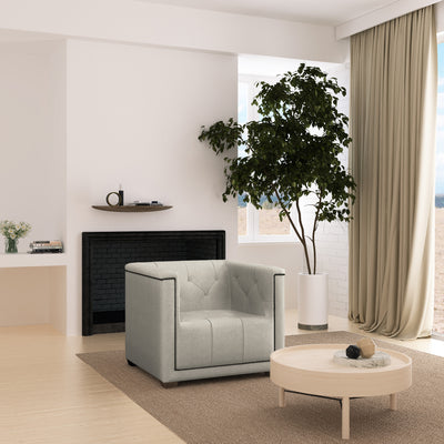 This charmer takes notes from the 1920's with its feet firmly planted in the now. Tufted button and brass detailing softens the edges of the frame’s no-nonsense square form. A clever design to complement all your favorite décor, from retro to recent.