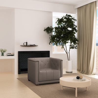 This charmer takes notes from the 1920's with its feet firmly planted in the now. Tufted button and brass detailing softens the edges of the frame’s no-nonsense square form. A clever design to complement all your favorite décor, from retro to recent.