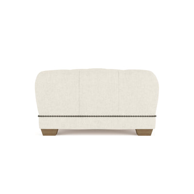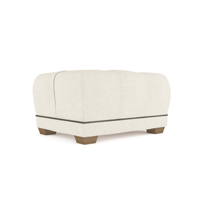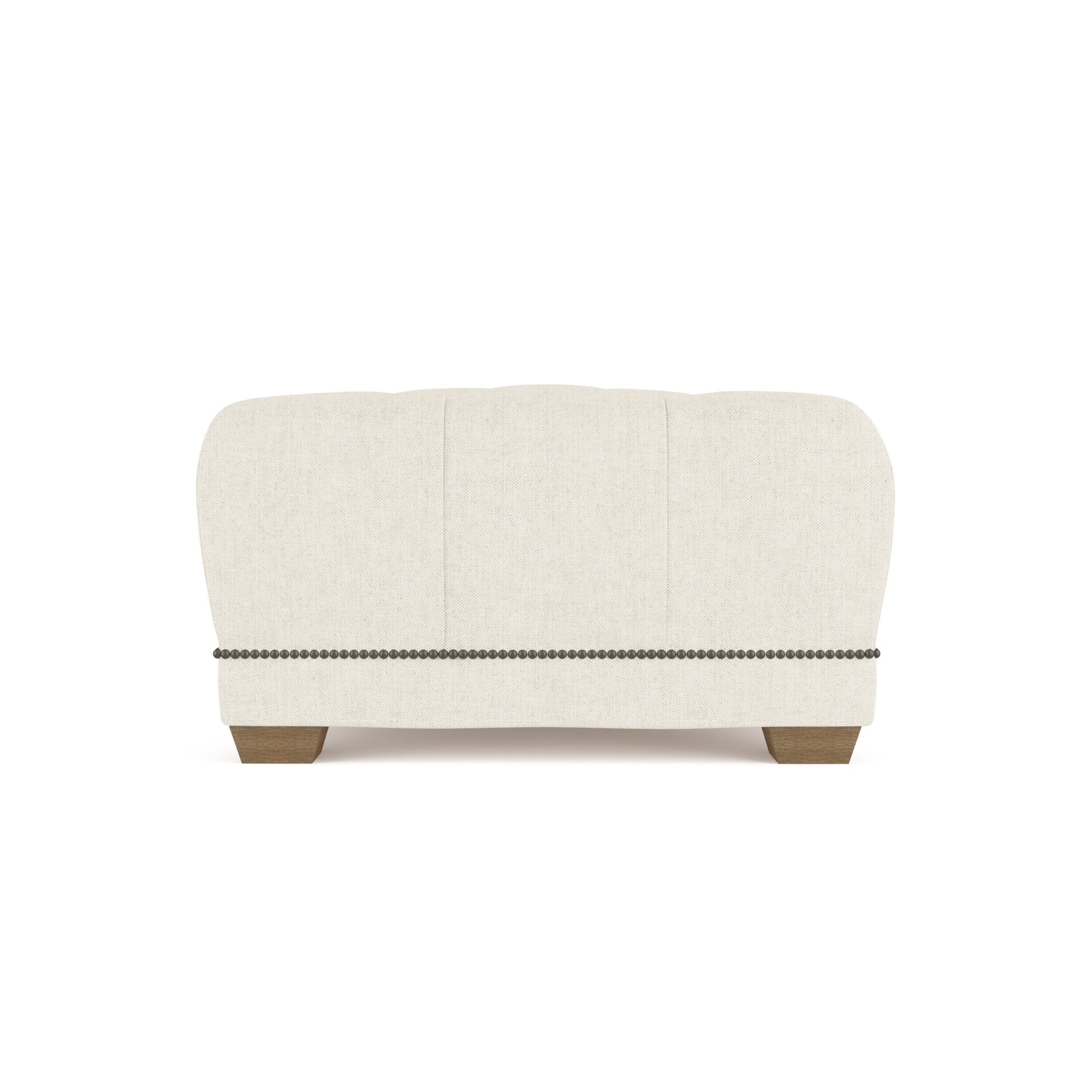 The Hudson Sofa’s perfect partner, this ottoman is a winning mix of dressed-up and dependable. The stout and sturdy frame is topped with a comfortably rounded cushion. Nailhead trim and tailored tufted buttons add understated formality.