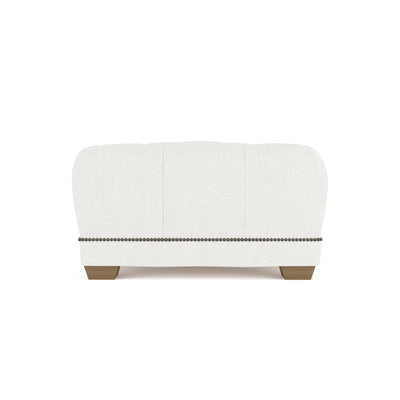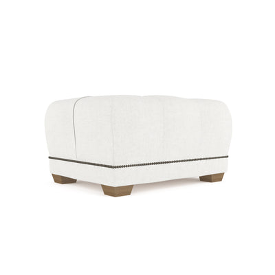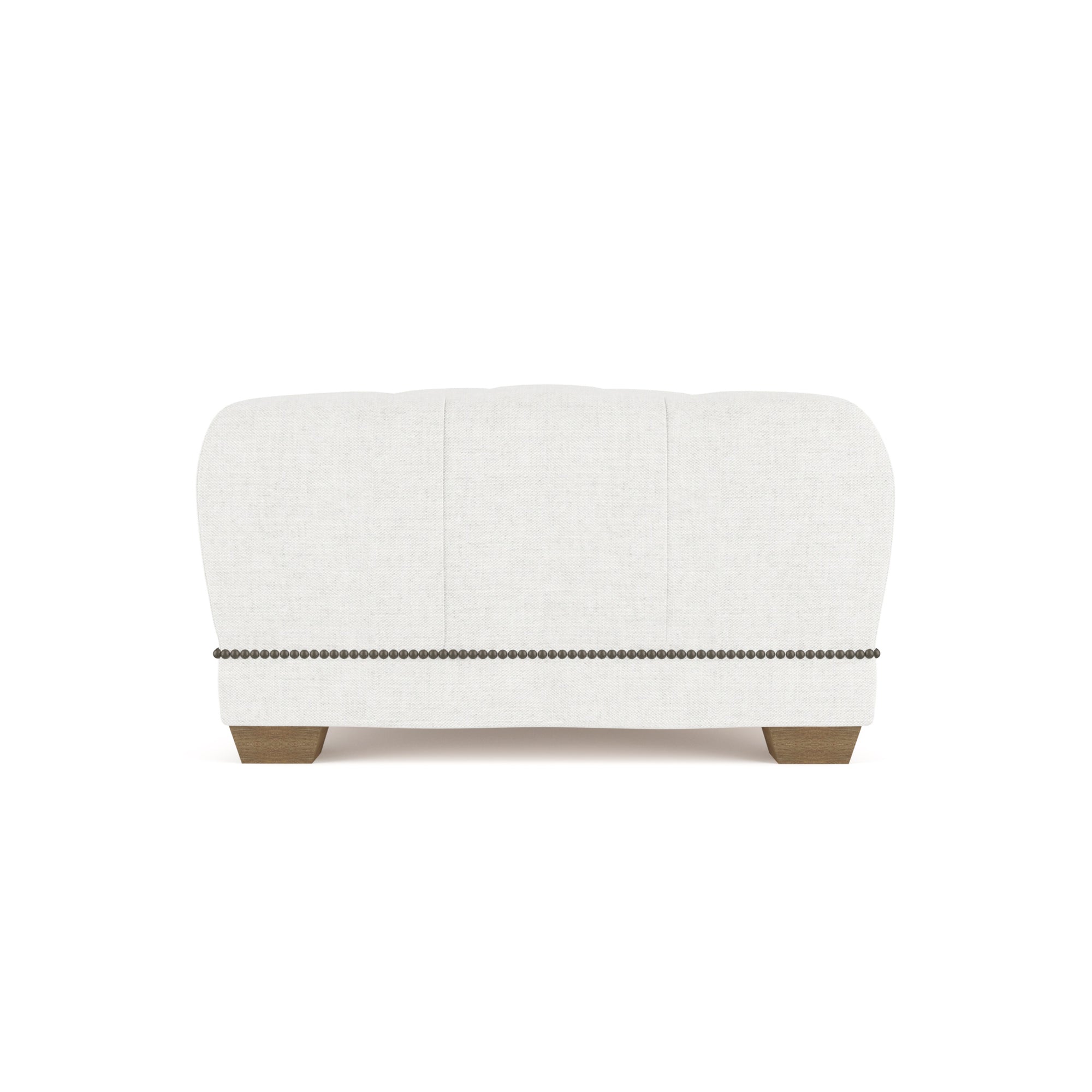 The Hudson Sofa’s perfect partner, this ottoman is a winning mix of dressed-up and dependable. The stout and sturdy frame is topped with a comfortably rounded cushion. Nailhead trim and tailored tufted buttons add understated formality.