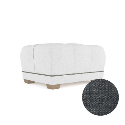 The Hudson Sofa’s perfect partner, this ottoman is a winning mix of dressed-up and dependable. The stout and sturdy frame is topped with a comfortably rounded cushion. Nailhead trim and tailored tufted buttons add understated formality.
