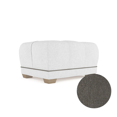 The Hudson Sofa’s perfect partner, this ottoman is a winning mix of dressed-up and dependable. The stout and sturdy frame is topped with a comfortably rounded cushion. Nailhead trim and tailored tufted buttons add understated formality.