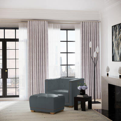 The Hudson Sofa’s perfect partner, this ottoman is a winning mix of dressed-up and dependable. The stout and sturdy frame is topped with a comfortably rounded cushion. Nailhead trim and tailored tufted buttons add understated formality.