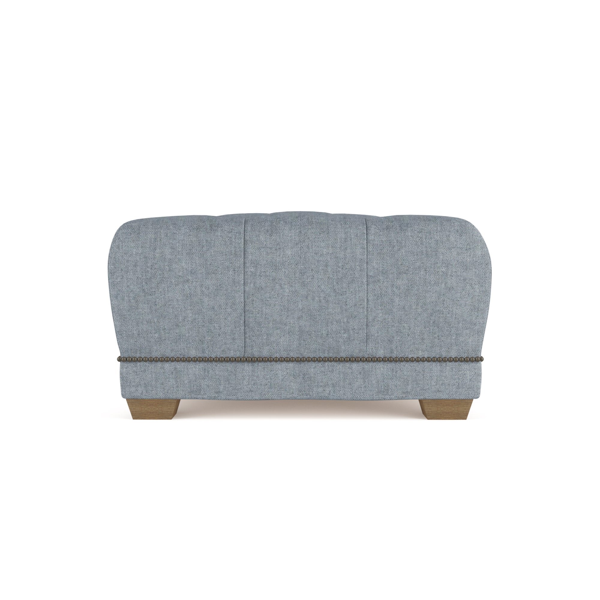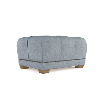 The Hudson Sofa’s perfect partner, this ottoman is a winning mix of dressed-up and dependable. The stout and sturdy frame is topped with a comfortably rounded cushion. Nailhead trim and tailored tufted buttons add understated formality.