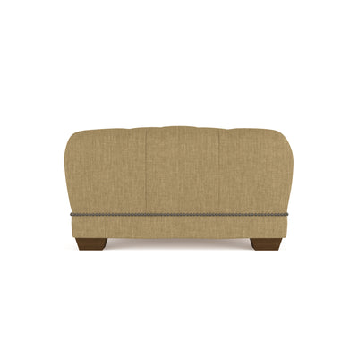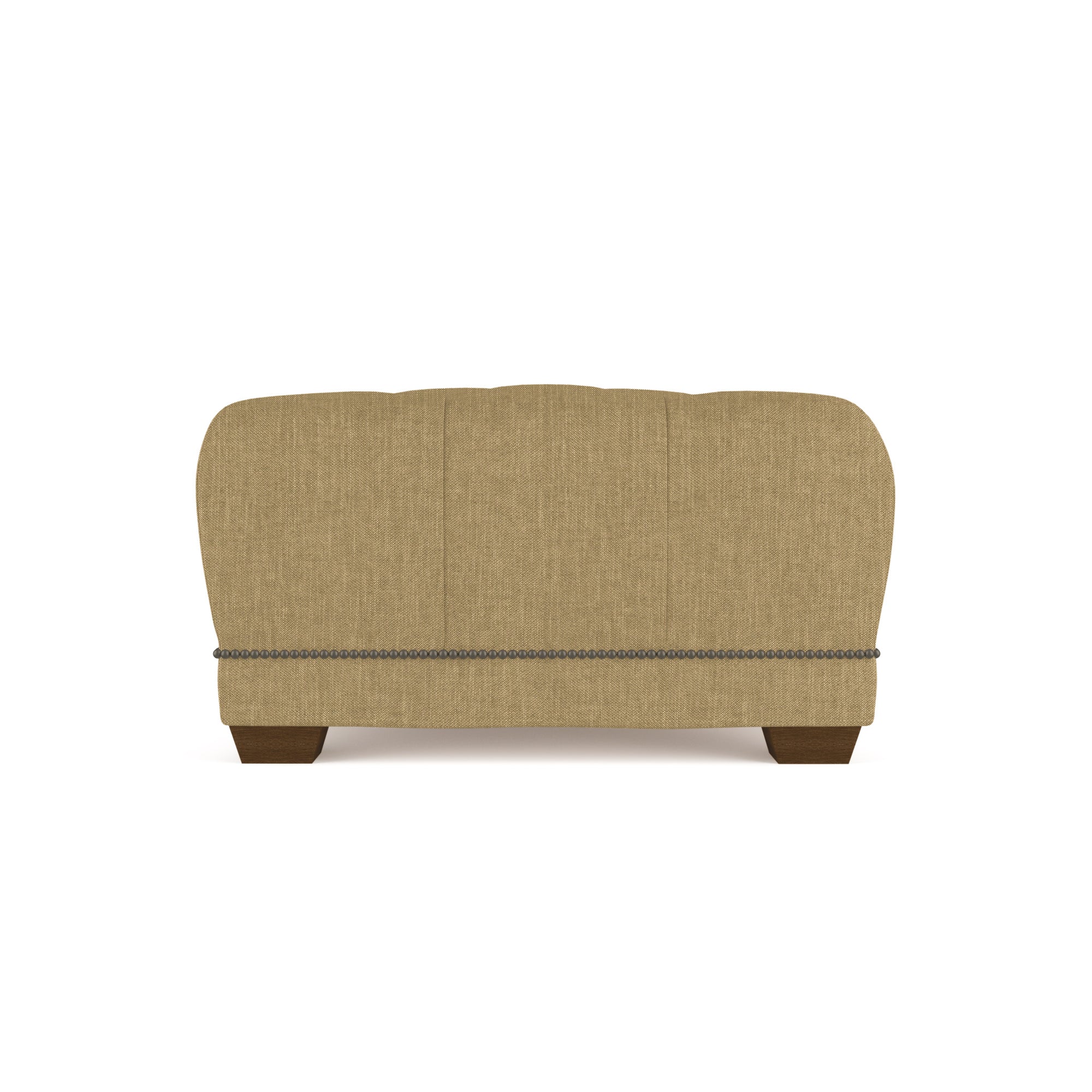 The Hudson Sofa’s perfect partner, this ottoman is a winning mix of dressed-up and dependable. The stout and sturdy frame is topped with a comfortably rounded cushion. Nailhead trim and tailored tufted buttons add understated formality.
