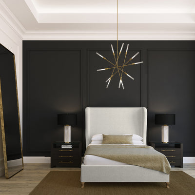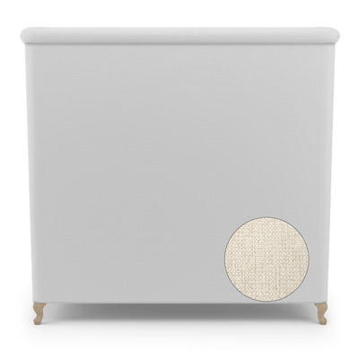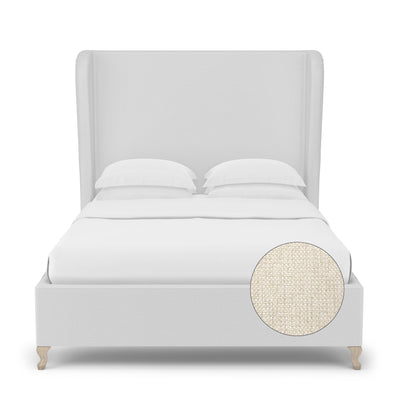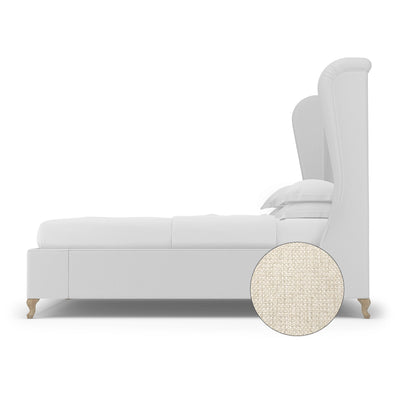 This soft, sweeping and rolled bed frame is a modern update to a classic shelter and wingback bed. The tailored bed with piping detail, rests on solid queen anne feet that acenuate the curves of the silhouette.