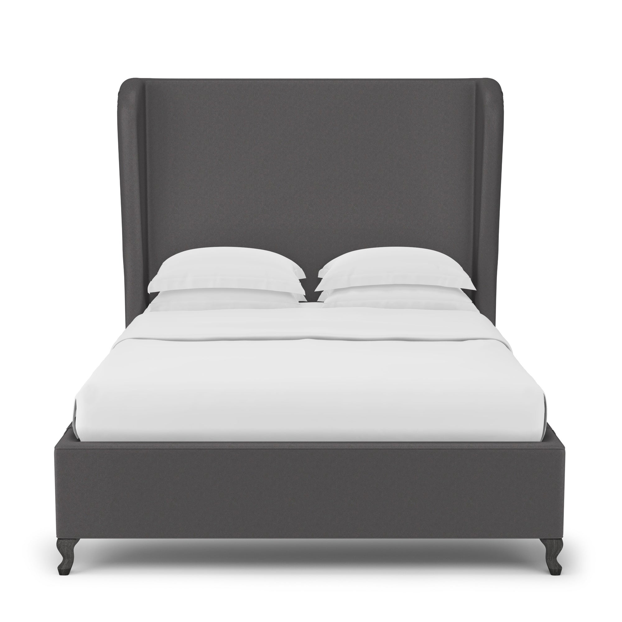This soft, sweeping and rolled bed frame is a modern update to a classic shelter and wingback bed. The tailored bed with piping detail, rests on solid queen anne feet that acenuate the curves of the silhouette.