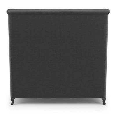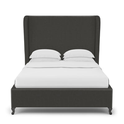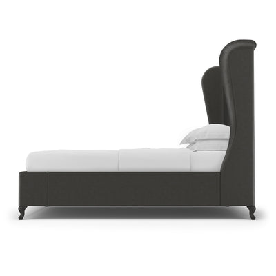This soft, sweeping and rolled bed frame is a modern update to a classic shelter and wingback bed. The tailored bed with piping detail, rests on solid queen anne feet that acenuate the curves of the silhouette.